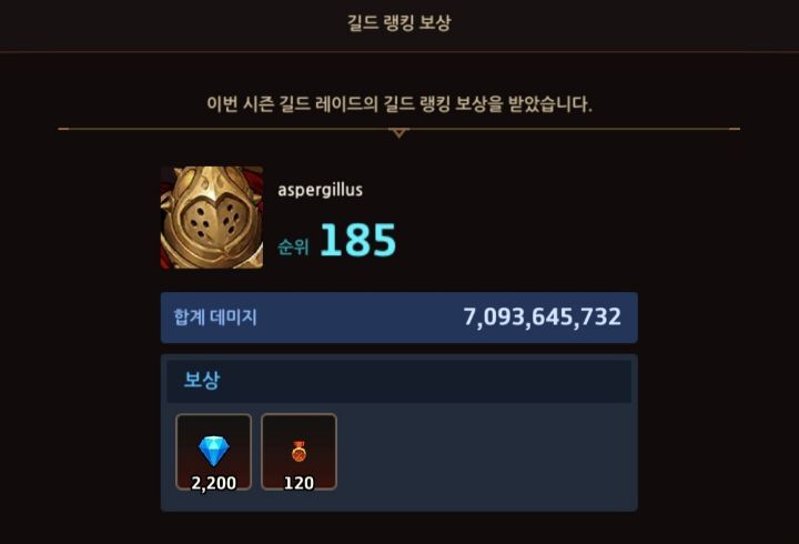계속되는 길드컨텐츠 동안 더 높은 순위를 기록하여