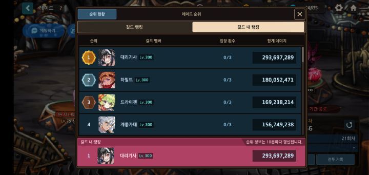 길드내 상위권분들은 in300 들어갈 실력자 분들이라 멤버충원만 하면 in500은 쉽게 들거같고