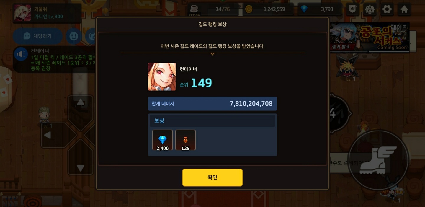 길드 컨텐츠(운석발굴제외) 중 엔 매일접속/레이드3회공격