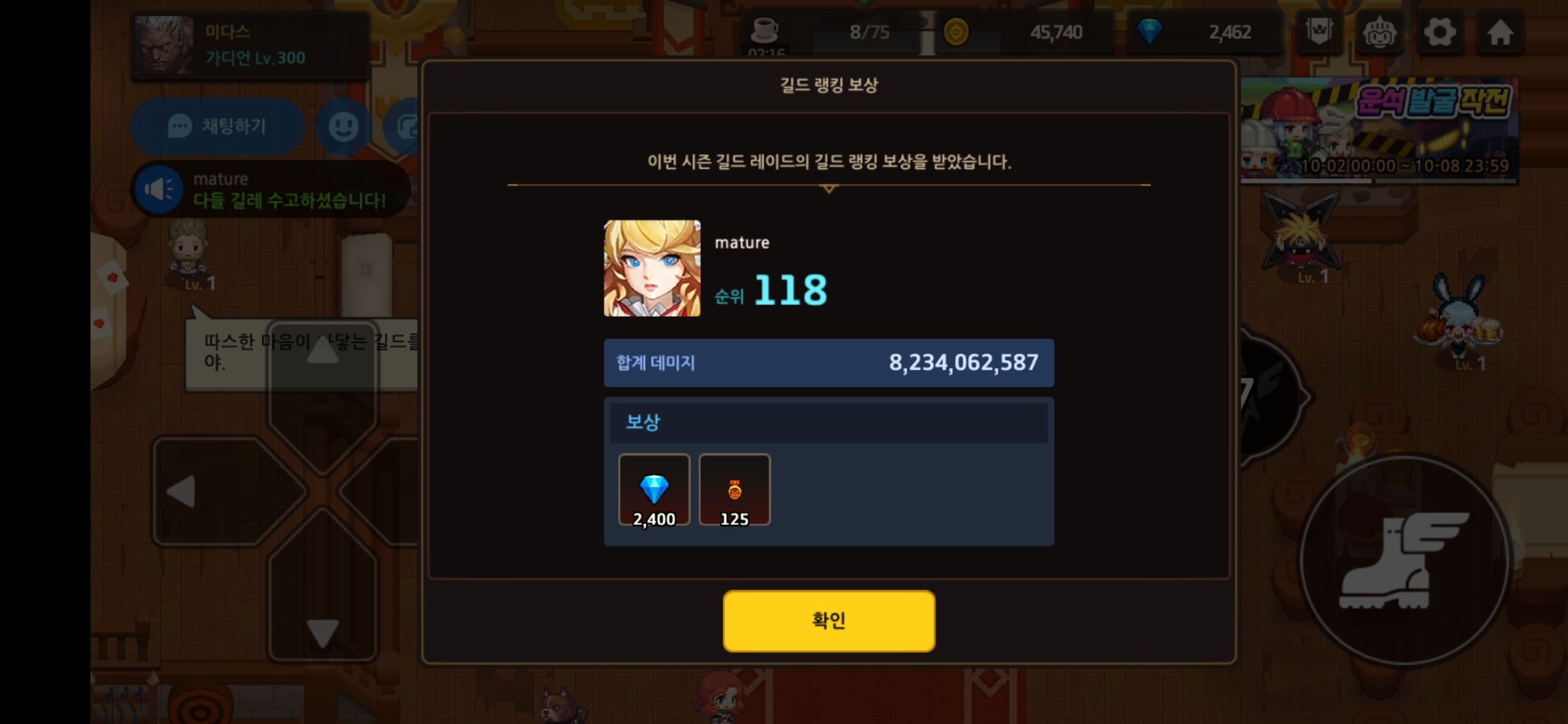 카톡 오픈채팅 방에 "가디언 테일즈mature"