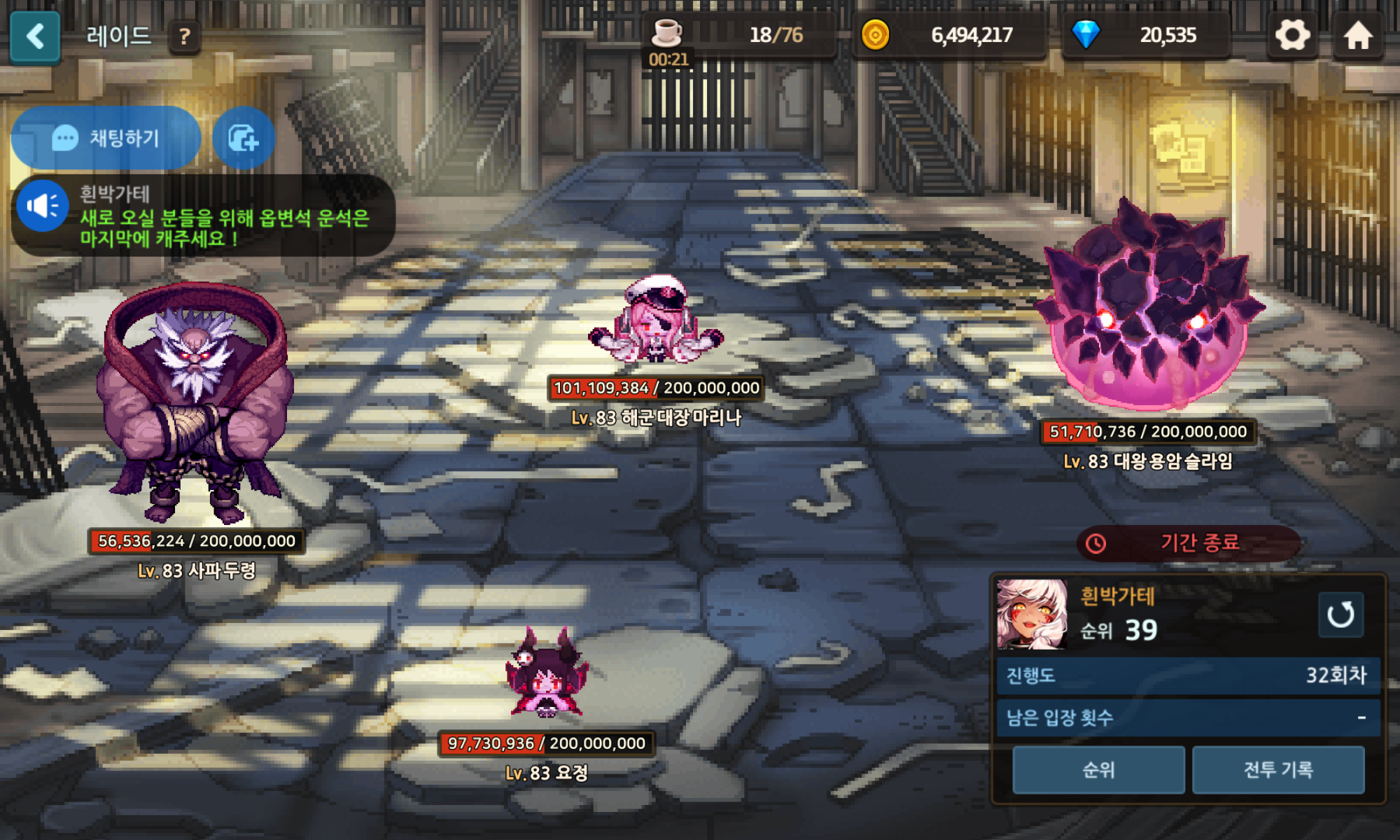 b. 레이드 첫날에는 본인이 때려서 딸피된 보스는 스스로 마무리 해주시는 매너를 원합니다.