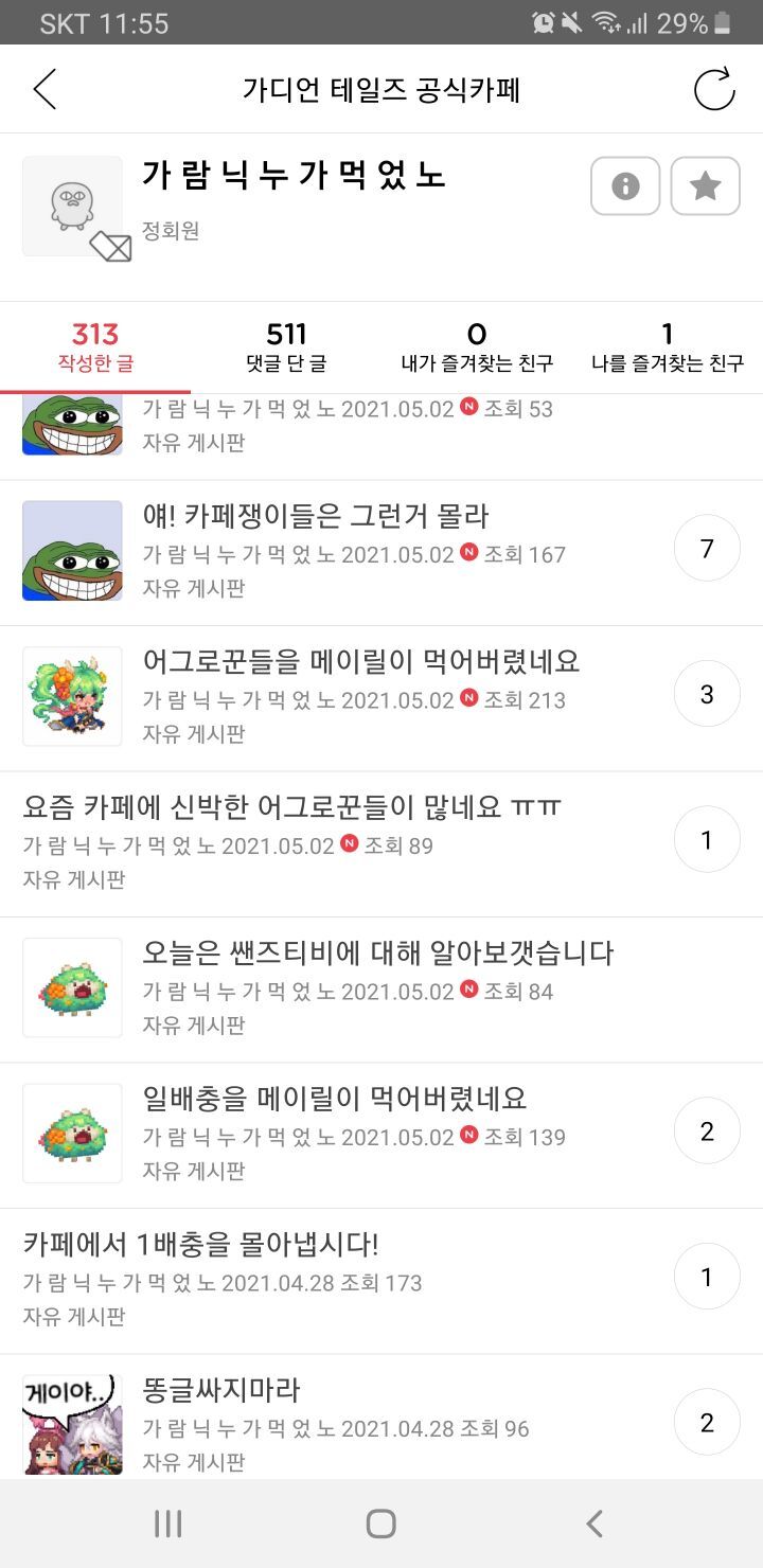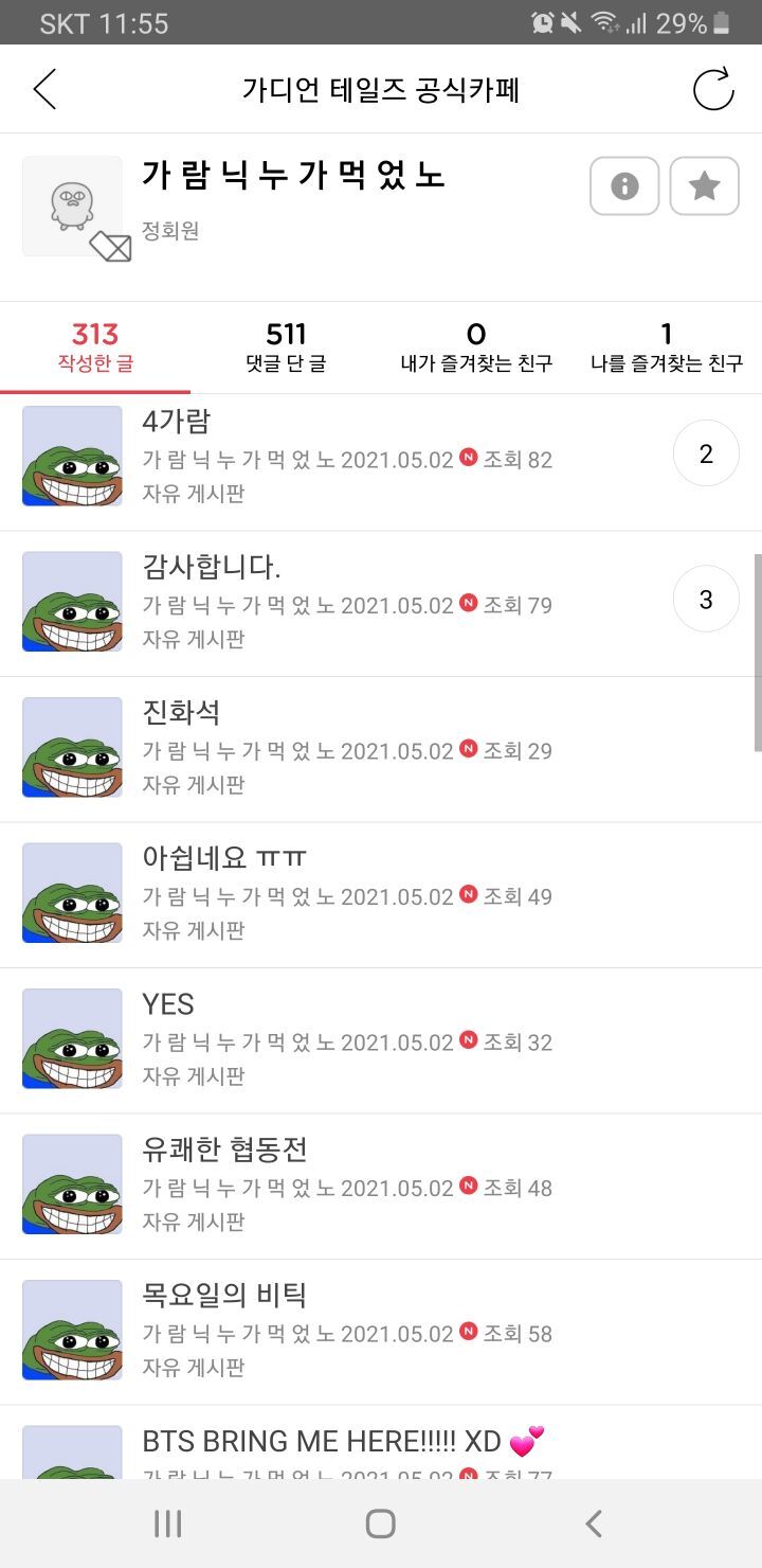 2.공식카페 지속적인 도배(현재 해당 계정 정지후 부계정으로 진행중)