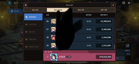 현재 길드레이 딜시트지 길드내 순위탭에는 길드레이드에 참여한 인원만 표시가 됩니다.