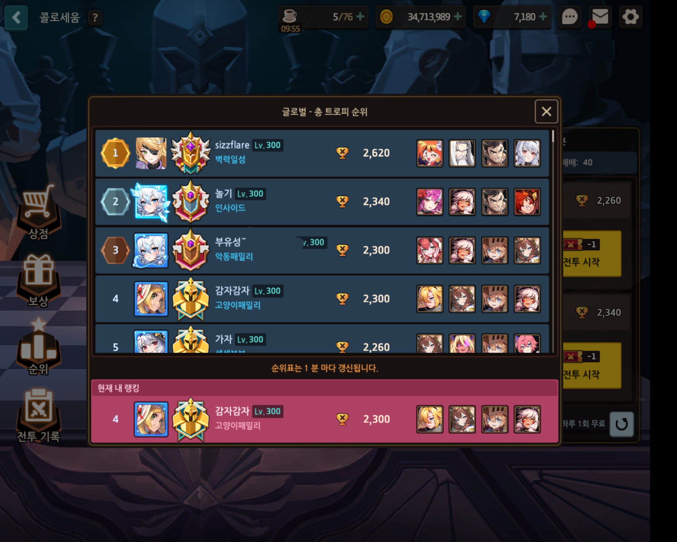 그런데 오늘 공격해서 동점으로 순위 탈취하려고 보니, 먼저 위에 있던 사람이 순위를 먼저 가져가는걸 확인했습니다.