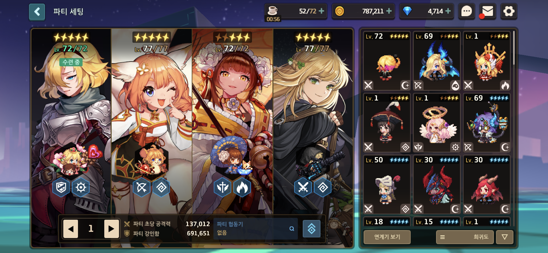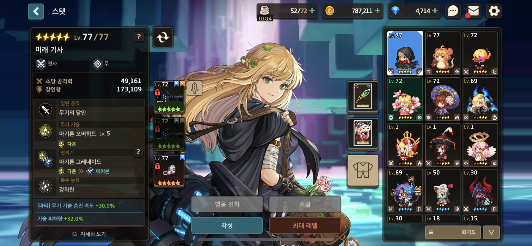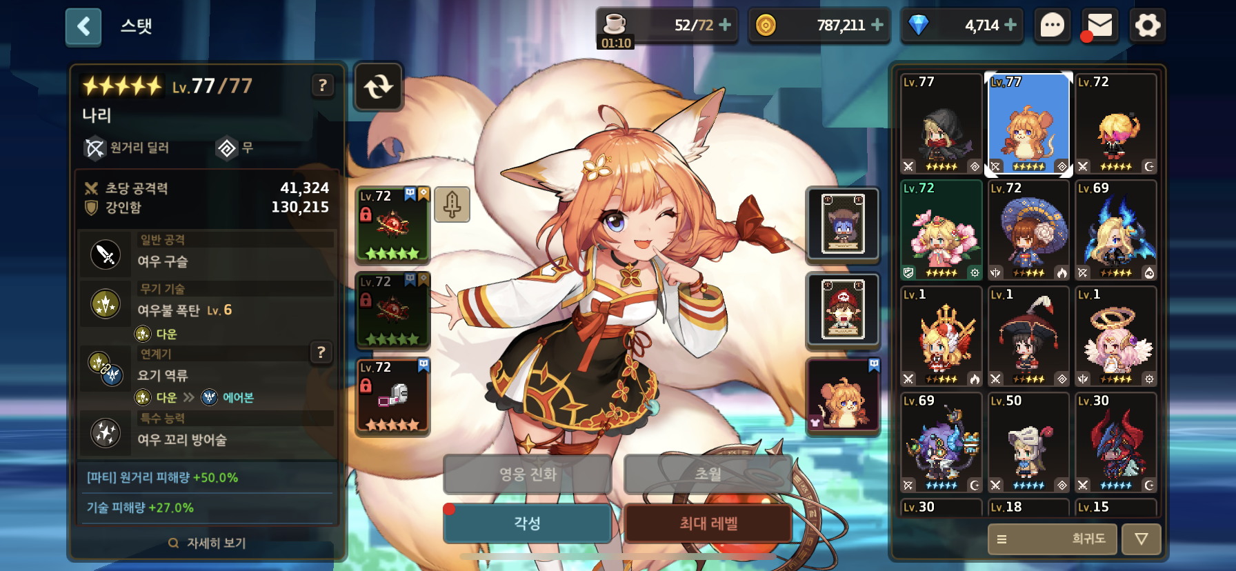 가장 먼저 키울 3성 영웅을 정했으면 그 영웅에게 각성석을 우선적으로 투자하도록 한다. 나머지 영웅들은 연계기만 활성화 시켜주고 최대한 아낀다.