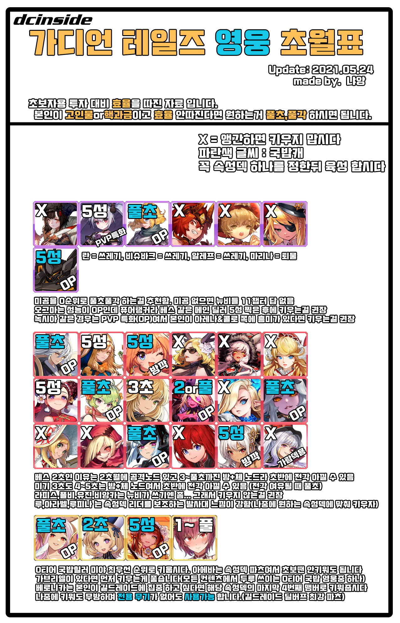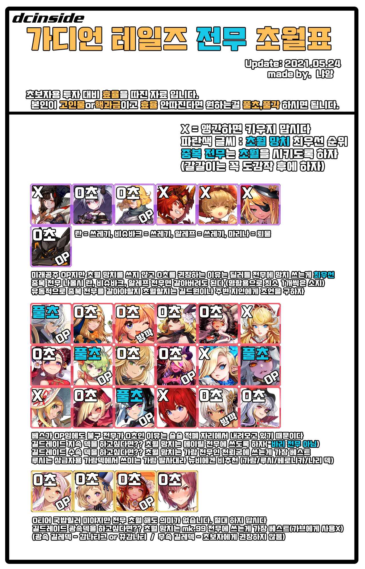 (최종 업데이트 5월 24일 - 신캐 루시 추가. 가브리엘 전무초월 비추천으로 수정)