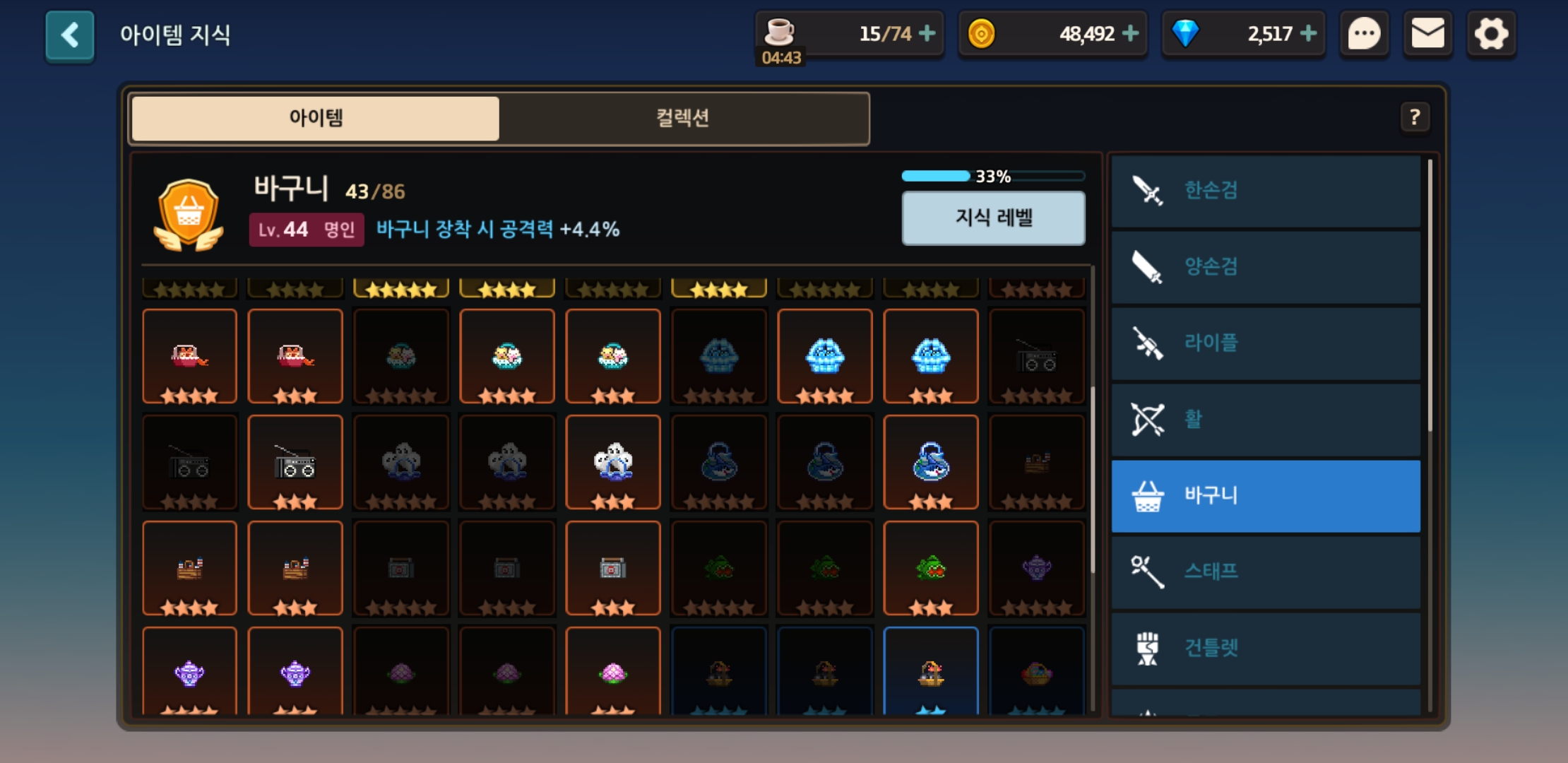 3.유니크(주황색) 도감작을 하나씩 해나간다.