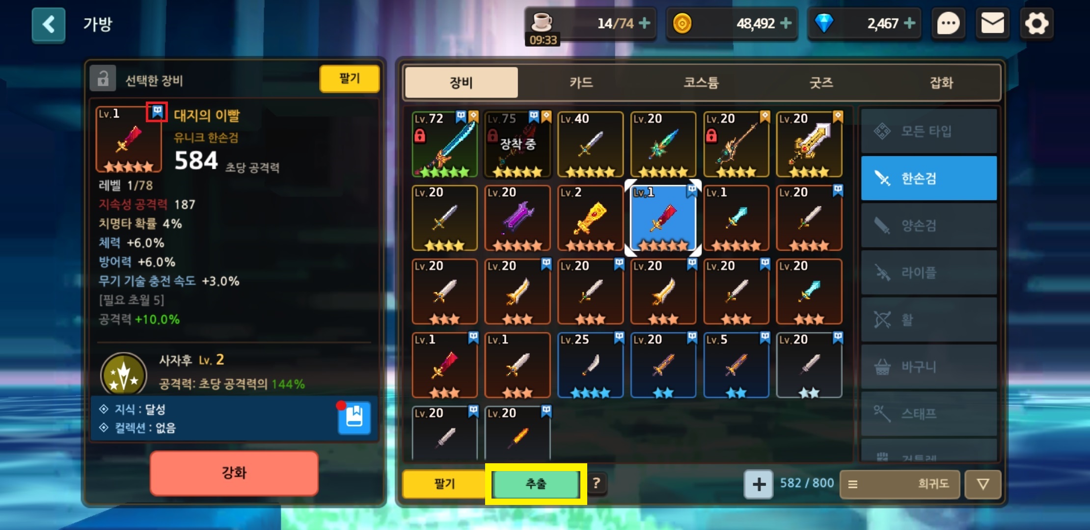 이렇게 도감작을 하고 난 이후의 5성 장비들은 두 가지로 나뉜다.