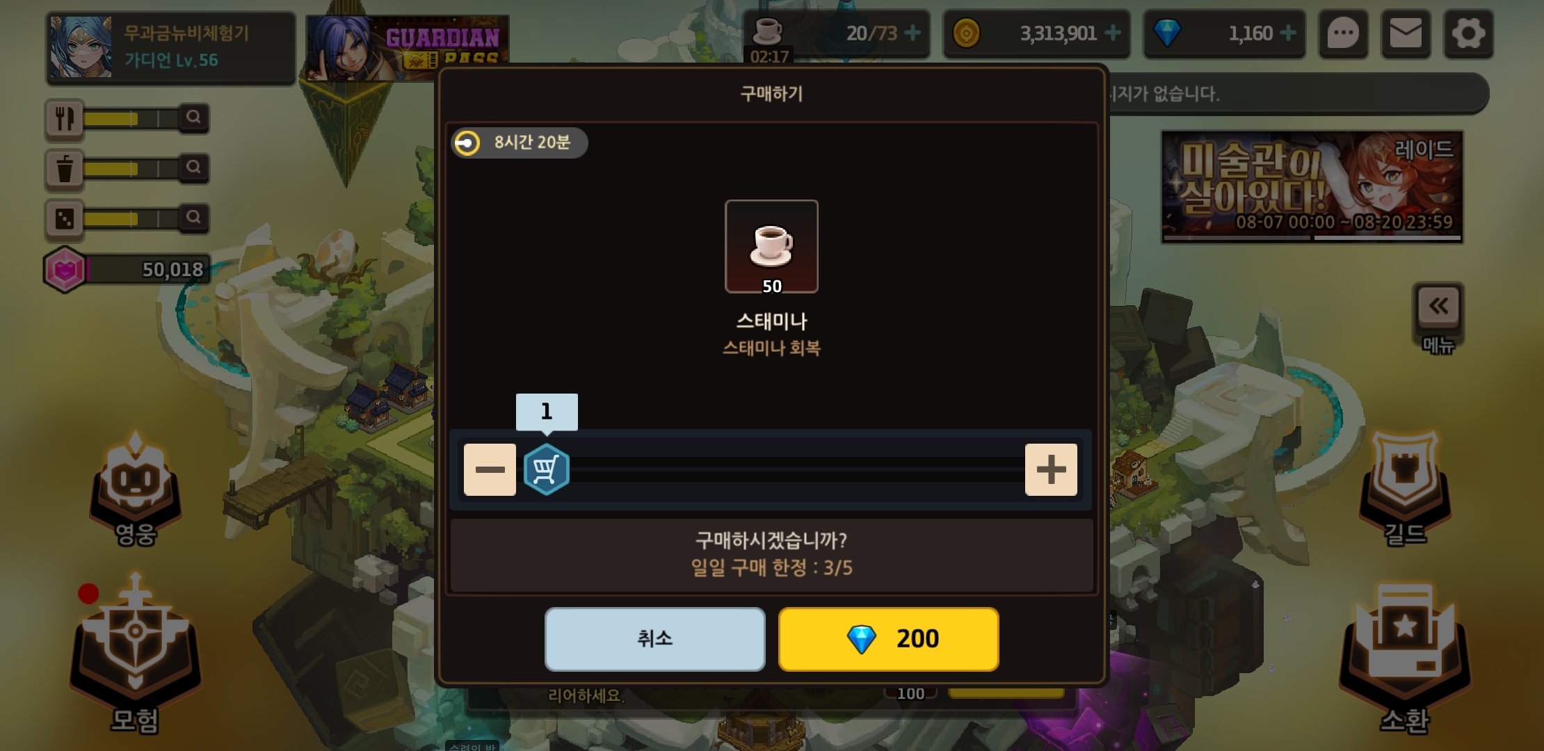 여관 레벨을 위해 하늘정원을 중점으로 빠르게 올려주자