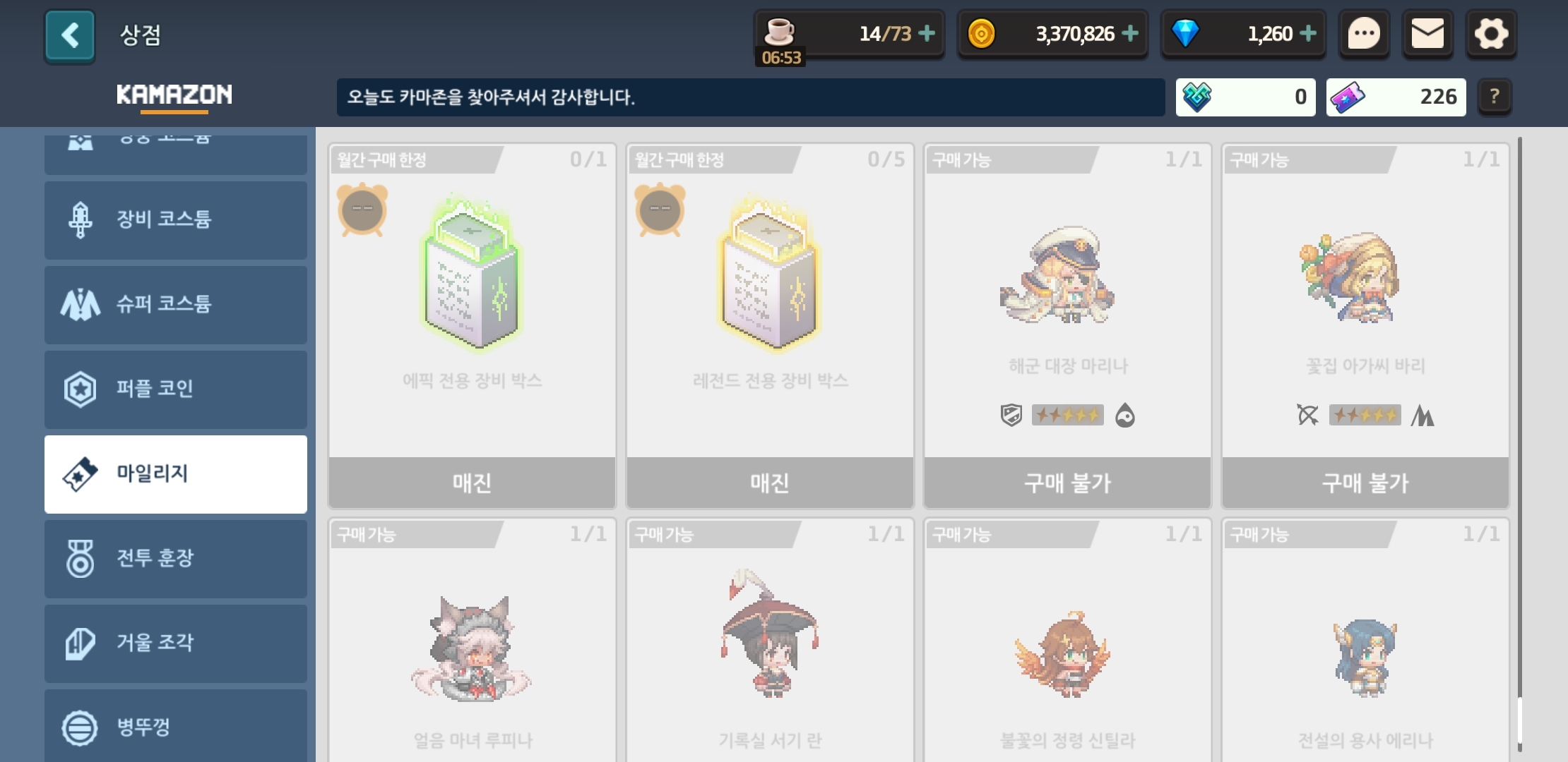 다들 마일리지 창에 있는 에픽 전무박스, 레전드 전무박스를 봤을 것입니다.
