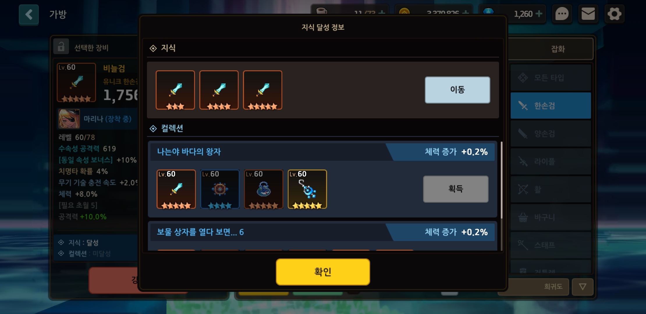 영웅 지식작, 아이템 컬렉작 시에 필요한 레벨이 60랩입니다.
