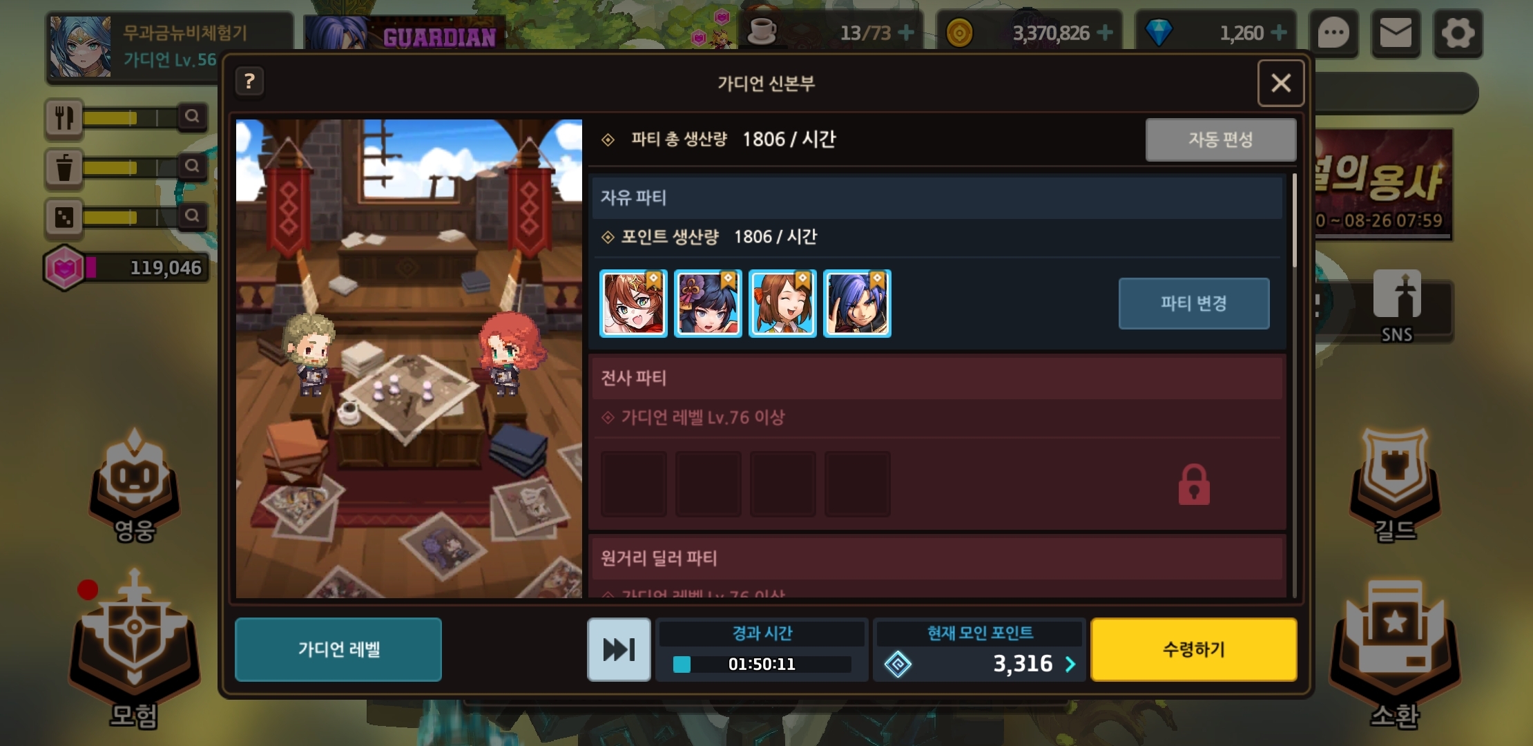 그러나 다른 가디언레벨51을 통한 진화석 소탕 오픈 및 10월드 돌파준비에는 이 만한 공략이 없다고 장담합니다.
