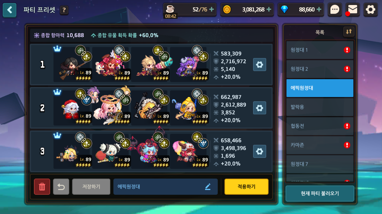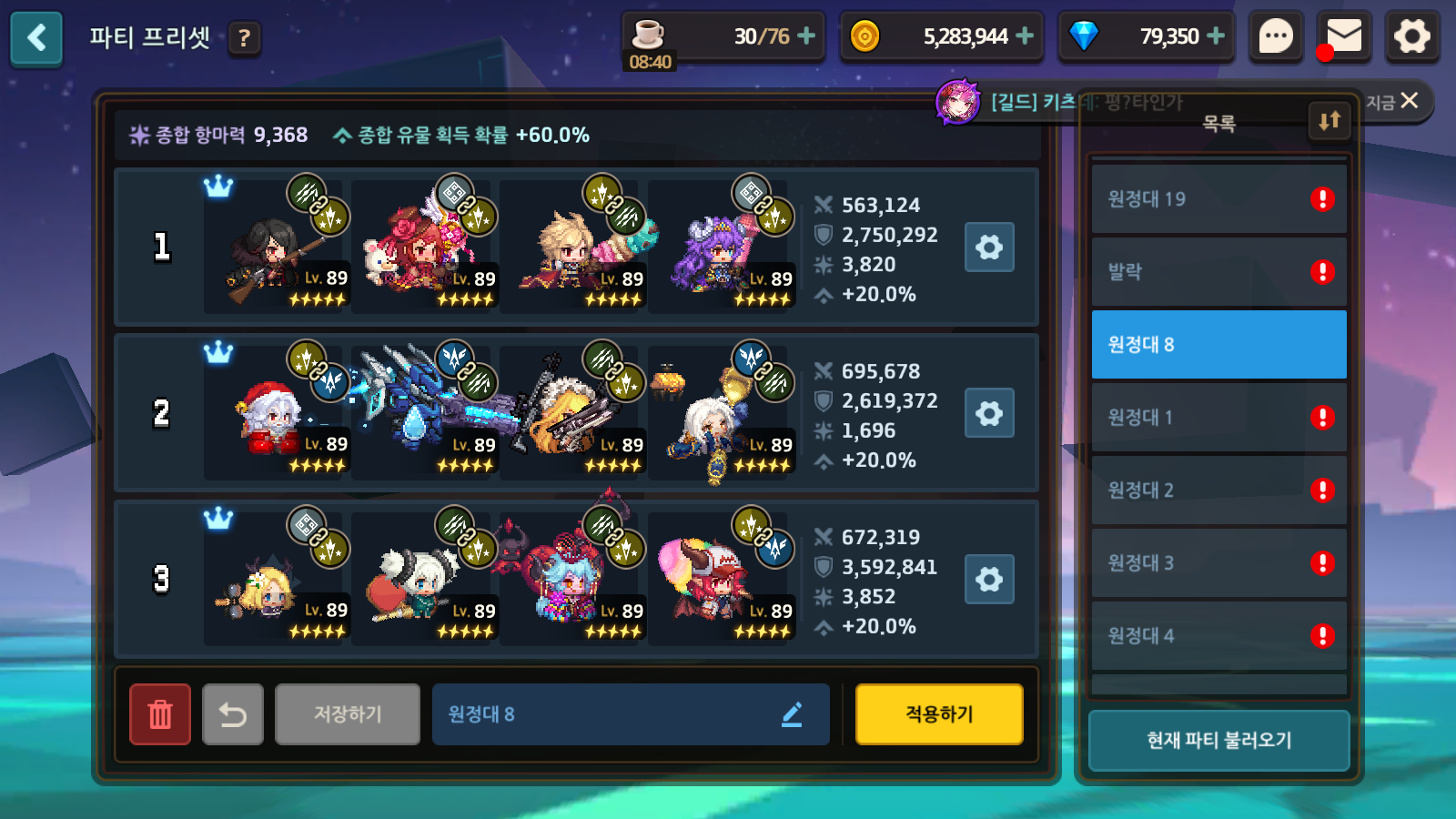 7교구의 경우 무속, 수속 몹이 나오기 때문에 클로드는 필수고, 지속은 광역성능이 좋은 캐릭이 전무하기 때문에 보스를 치는거 아니면 추천하지 않습니다. 예전 글에 적었듯이 크롬발렌파티 쓰는게 훨씬 좋더라고요.