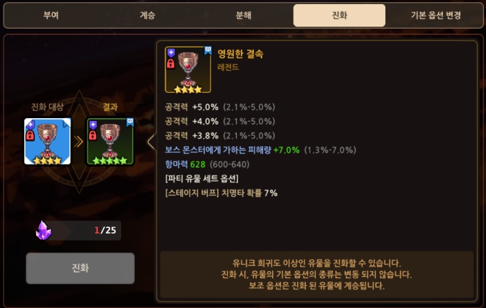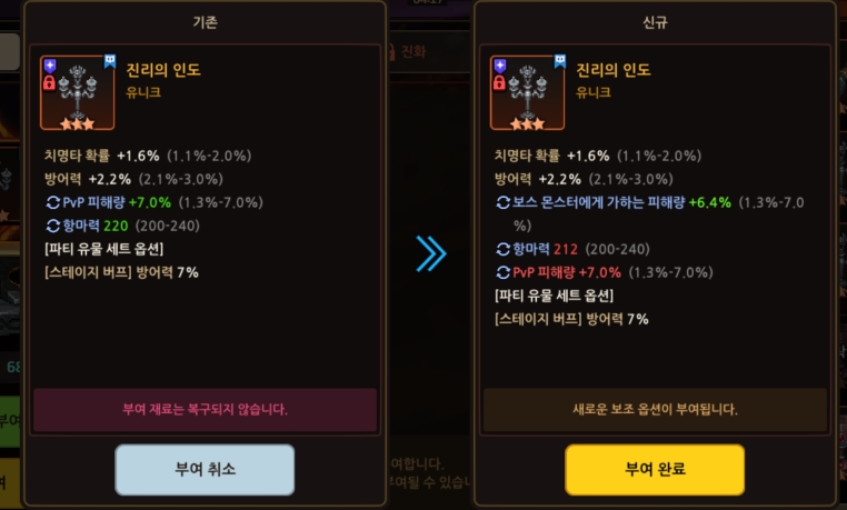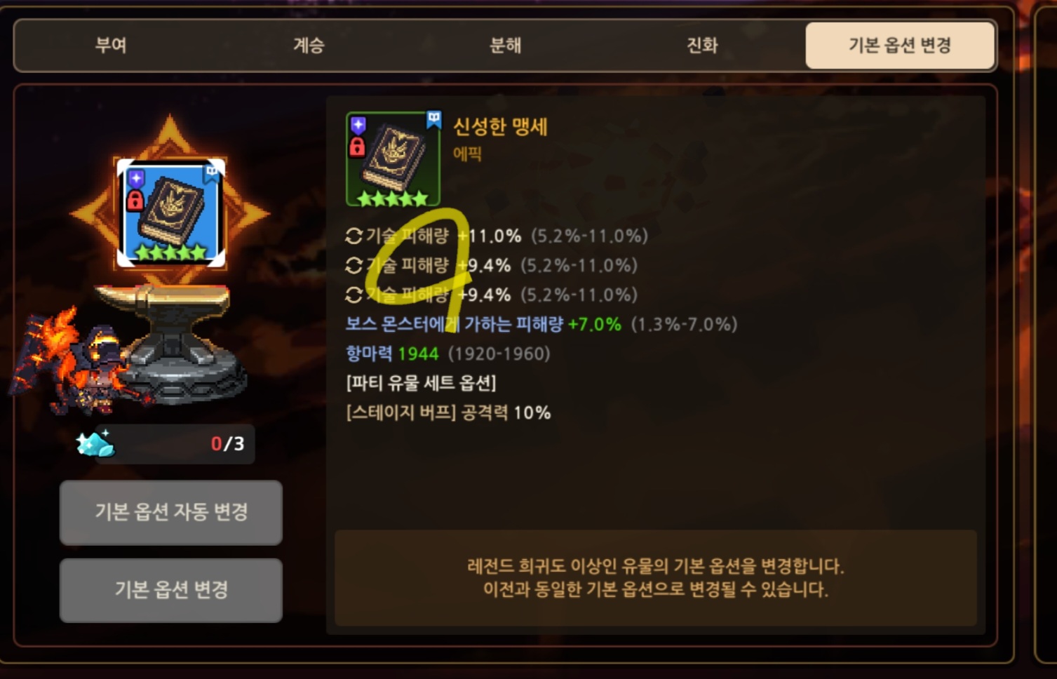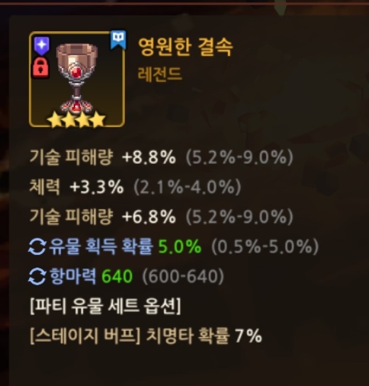 작성자김PD 작성시간 24.03.16 유물속성 부여할때, 유물획득 5%에 항마력도 max로 얻는 팁이 있나요?