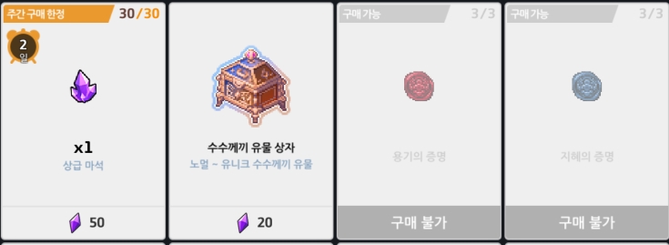 - 잔 4개 / 책 4개 등 (등급 상관 x) -