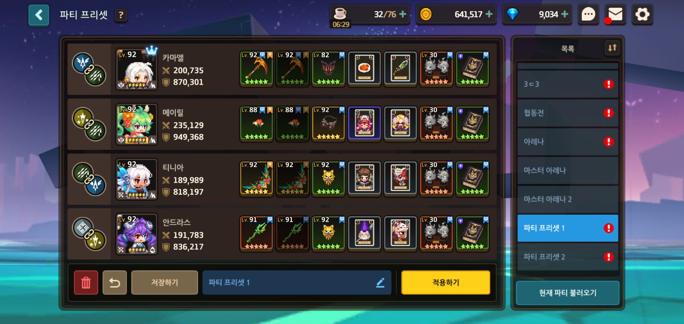 안드 > 메이릴 > (스킬) > 티니아 > 카마엘