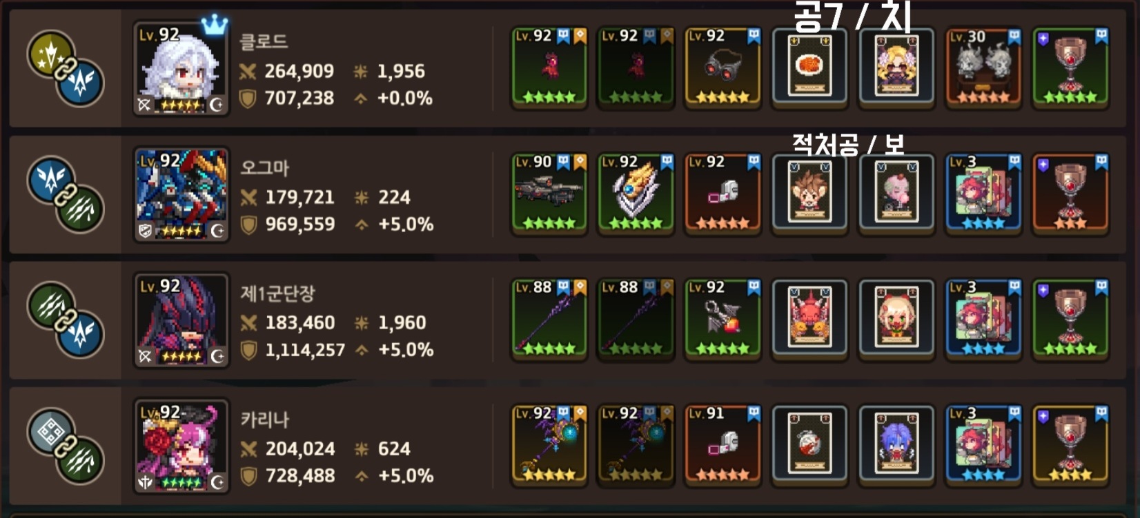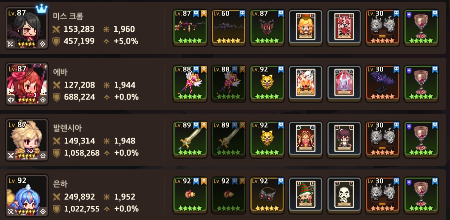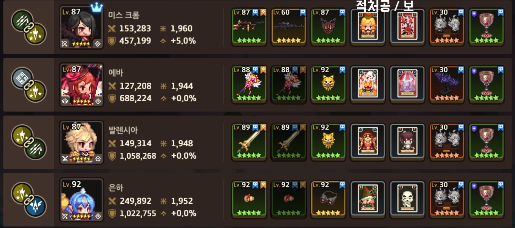미스크롬은 5성까지만 육성 후 기용 중입니다.