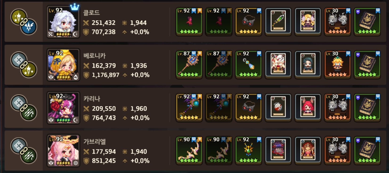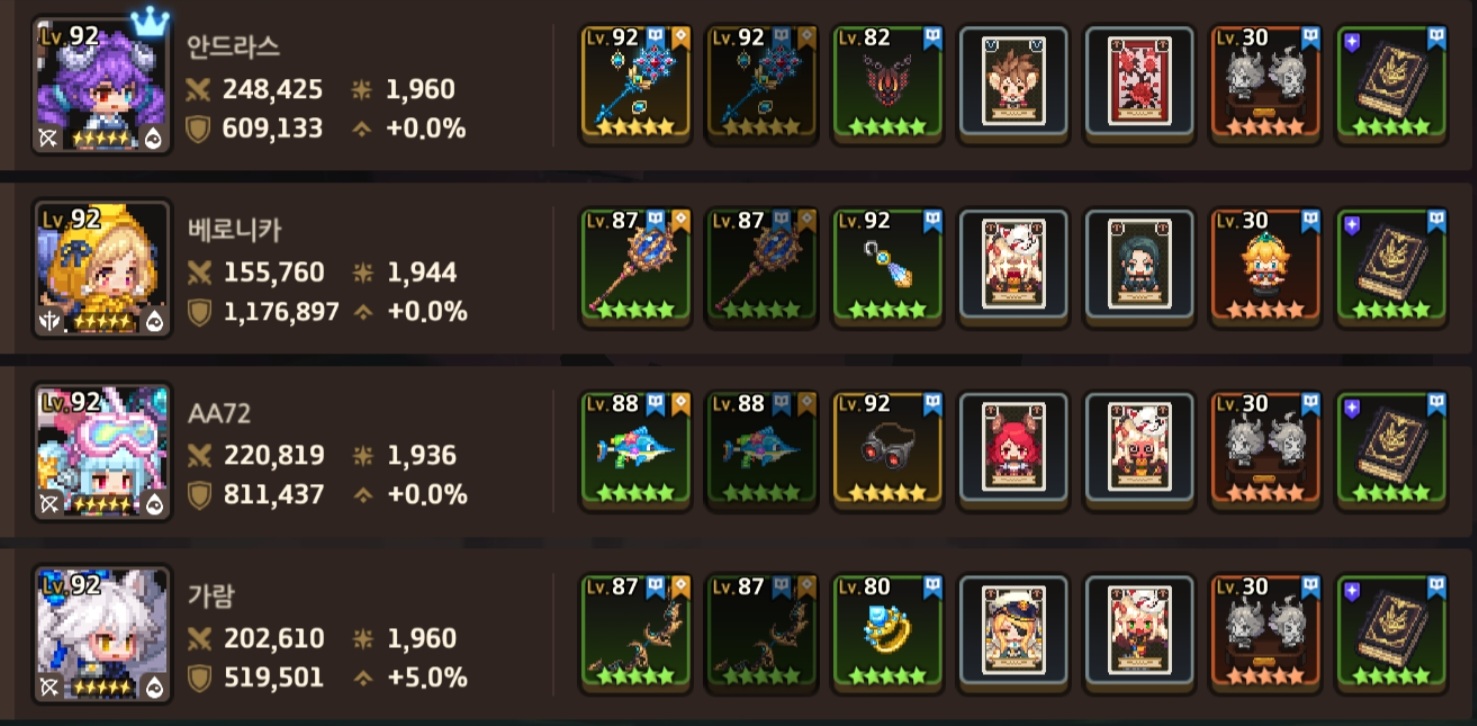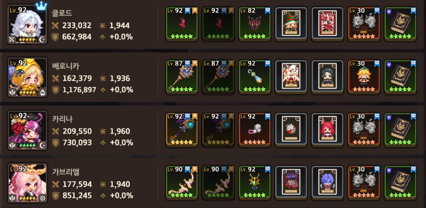 미스크롬은 5성까지만 육성 후 기용 중입니다.