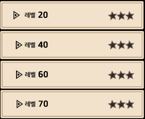 20, 40, 60, 70 ๋ ๋ฒจ์