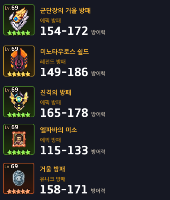 추천하는 방패와 악세사리입니다.