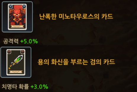 카드는 공격력 5% 또는 치명타 3%가 좋습니다.