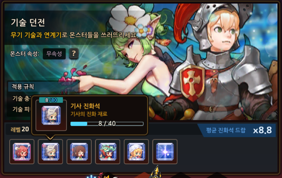 굳이 직접 키우겠다고 하시면 무속성 진화석 던전을 열심히 클리어해서 기사의 진화 최대로 만들어주시고