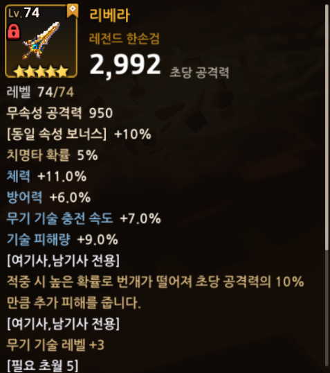기사에게 최고의 무기는 기사 전용 무기인 "리베라"입니다.