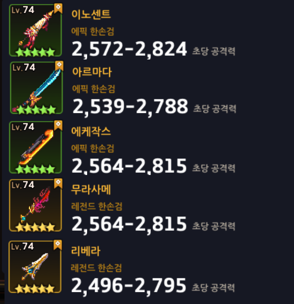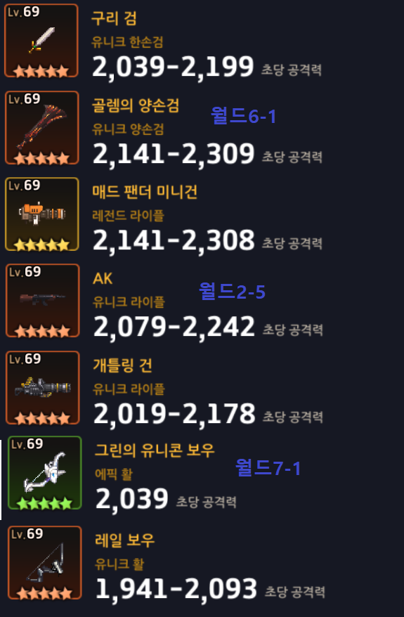 제가 추천하는 무기 목록은 이렇습니다.
