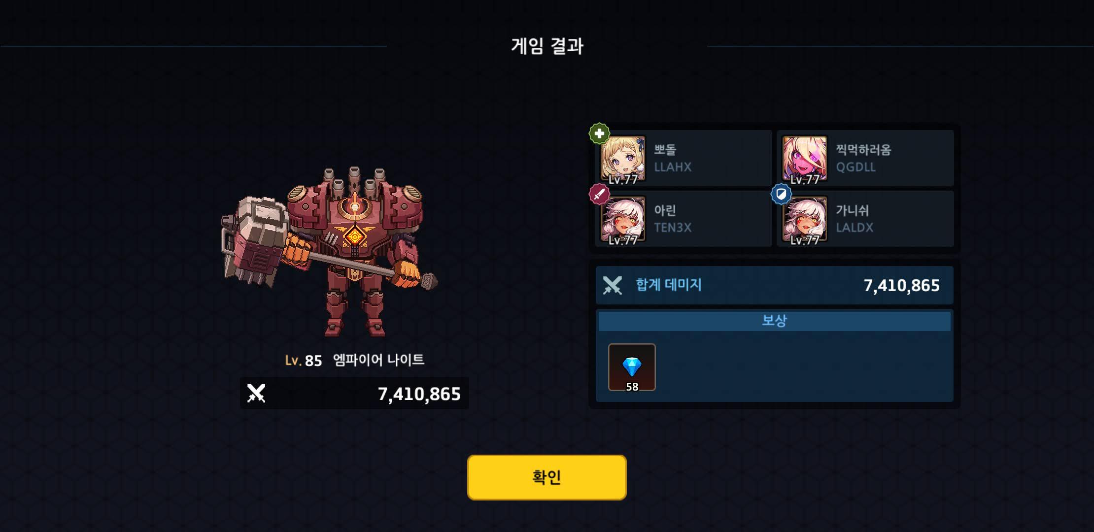 암속 치명파티로 85렙 협동전을 케이크처럼 쉽게 먹는 법 작성자갸르르|작성시간21.03.19|조회수167 목록 댓글 1 글자크기 작게가 글자크기 크게가 초반에 베스가 팅겼음에도 불구하고 1 베로니카 + 2 루피나 조합으로 85렙 협동전 케이크처럼 쉽게 먹었습니다^^ 치명타 확률 + 치명타 배율 짱짱걸~ 다음검색 현재 게시글 추가 기능 열기 북마크 공유하기 신고 센터로 신고 댓글 댓글 1 댓글쓰기 답글쓰기 댓글 리스트 작성자ßß2 | 작성시간 21.03.19 오홍 댓글 전체보기
