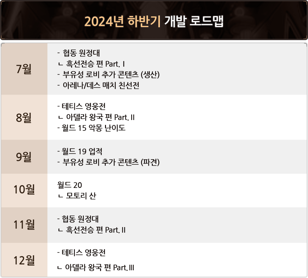 - 예정된 콘텐츠 사이클 외, 악몽과 단편집 등 스토리 콘텐츠도 꾸준히 업데이트될 예정입니다.