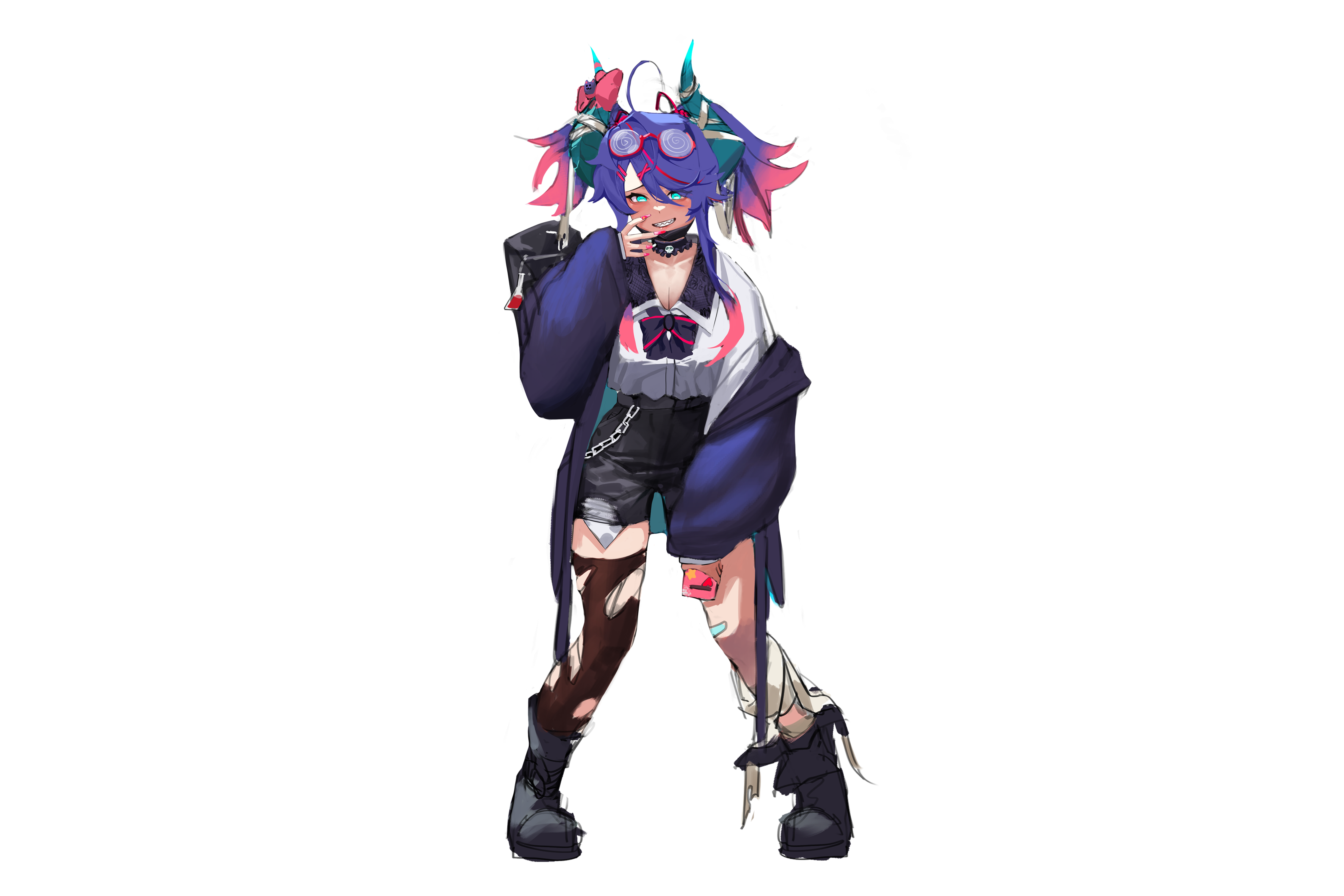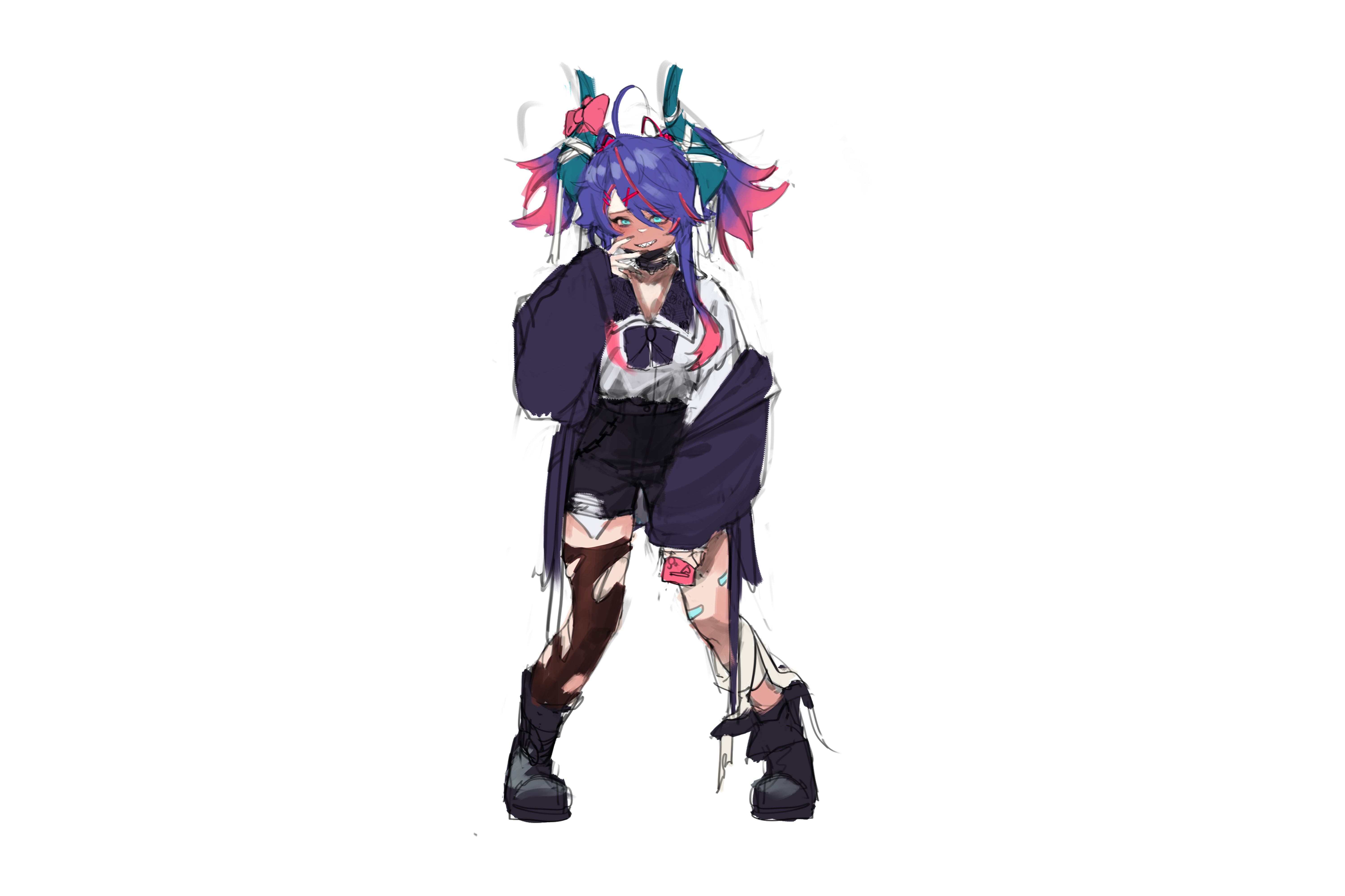 머리색 끝을 분홍색으로 염색했고, 교복을 개조해 입었습니다.