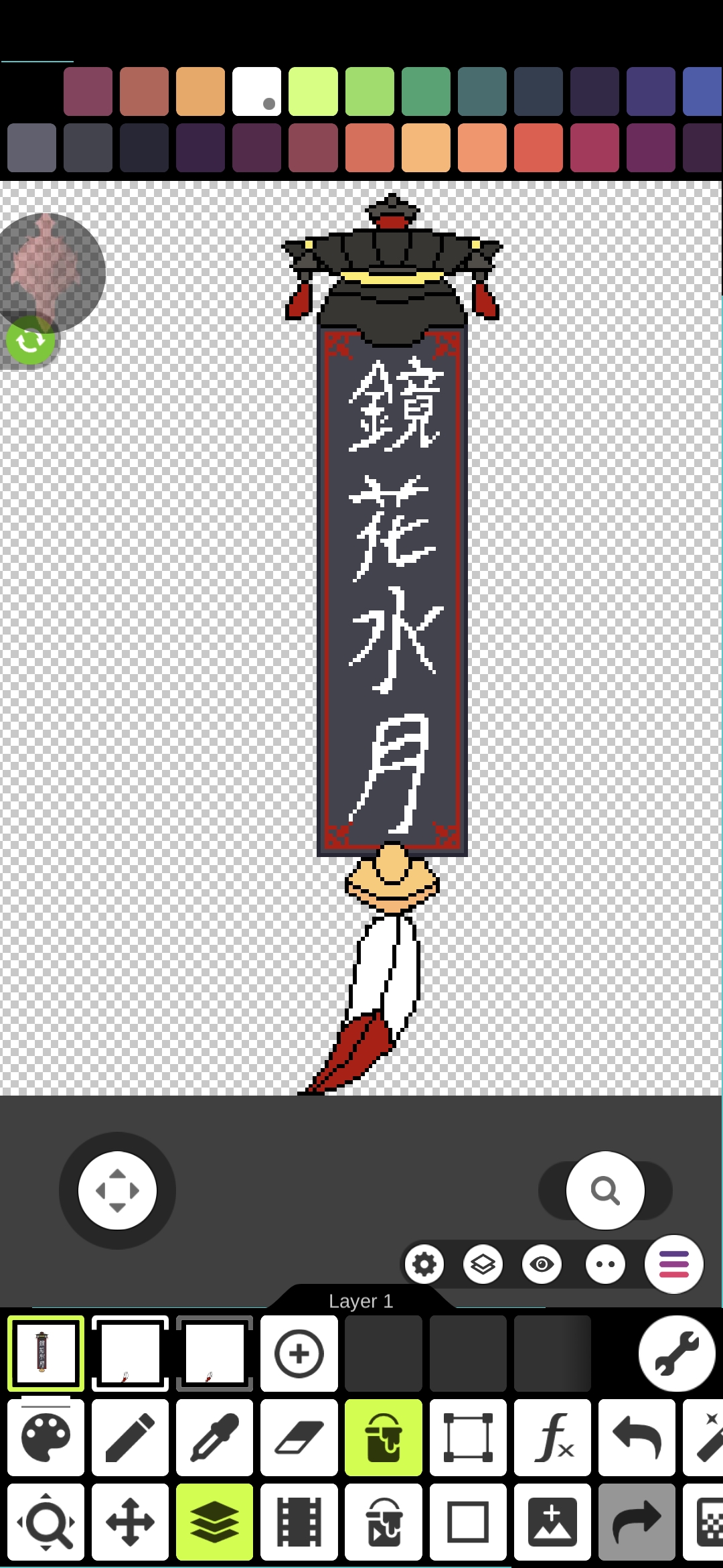 -기록실의 서기 란의 복장과 "경화수월"에서 따온 책갈피 입니다.