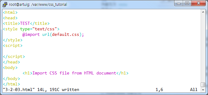 HTML 문서에서 default.css 파일을 임포트하는 경우의 예입니다.