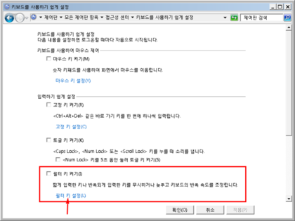 누르셨으면 이렇게 뜨실텐데 "필터키설정"을 눌러줍니다
