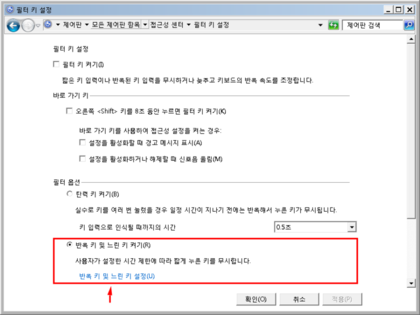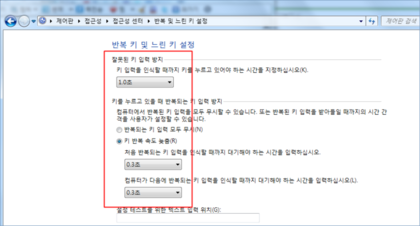 밑에보이는 반복 키 및 느린키 설정을 눌러줍니다