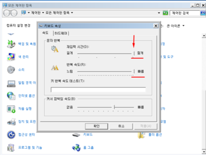 우선 제어판을 통한 키보드 반응속도 팁입니다