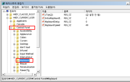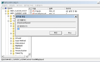 이번엔 두번째 방법인 레지스트리 설정으로 키보드 반응속도를 올릴수있는 방법입니다