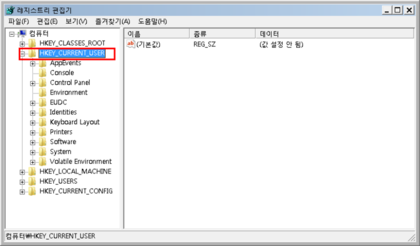 HKEY_CURRENT_USER 를 클릭해줍니다