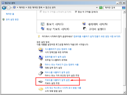 키보드를 사용하기 쉽게 설정을 눌러줍니다