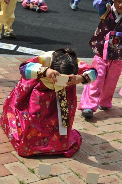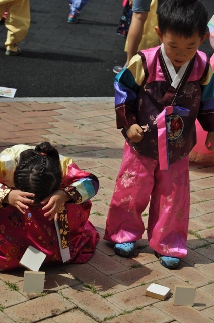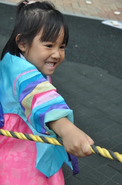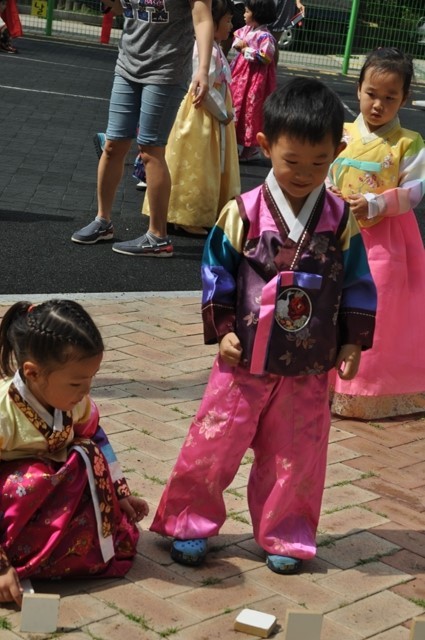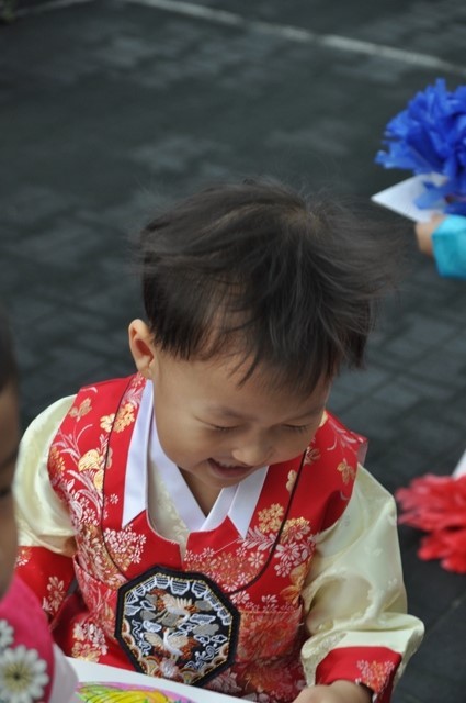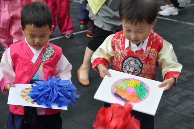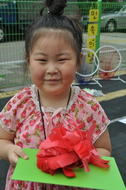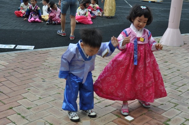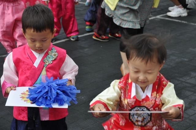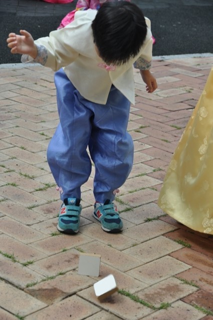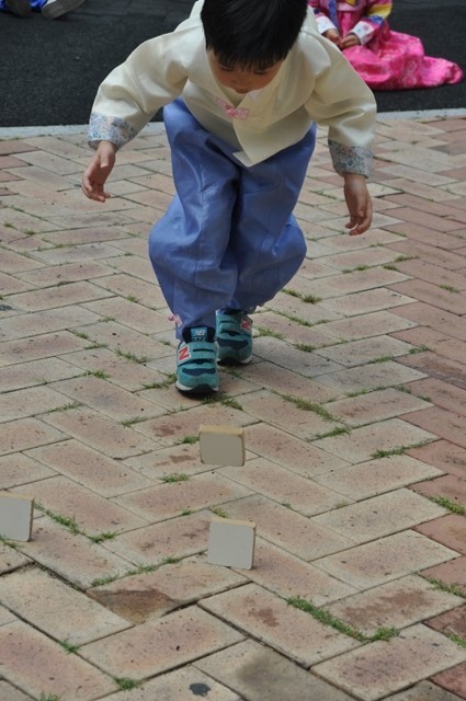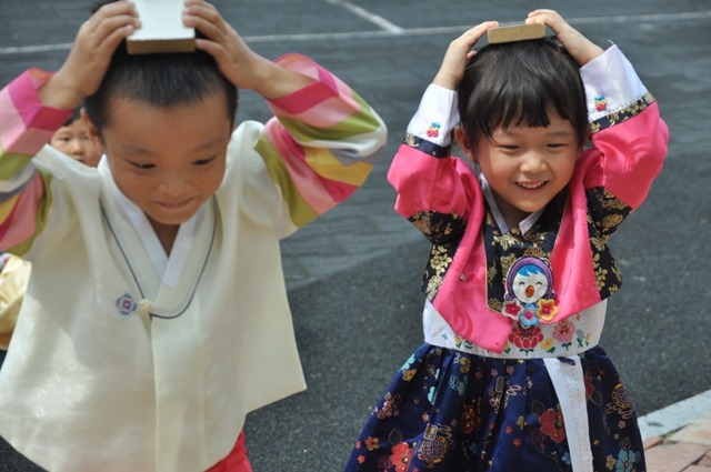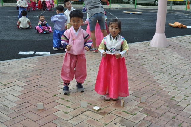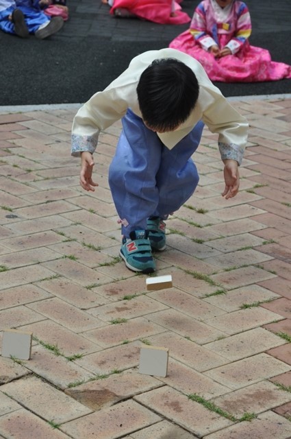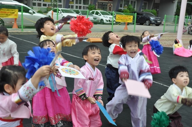 제기차기를 하는 우리 아이들의 표정이 싱글벙글이네요.
