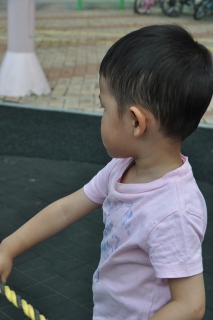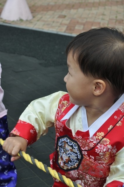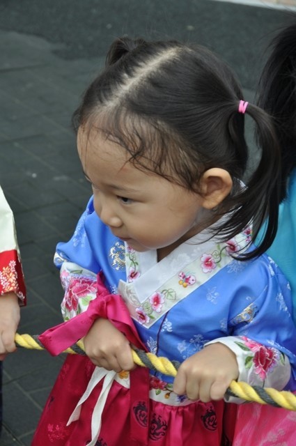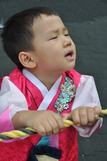 줄을 잡고 힘을 주는 우리 꽃잎이, 산들이들.......얼굴에 힘이 들어갑니다.