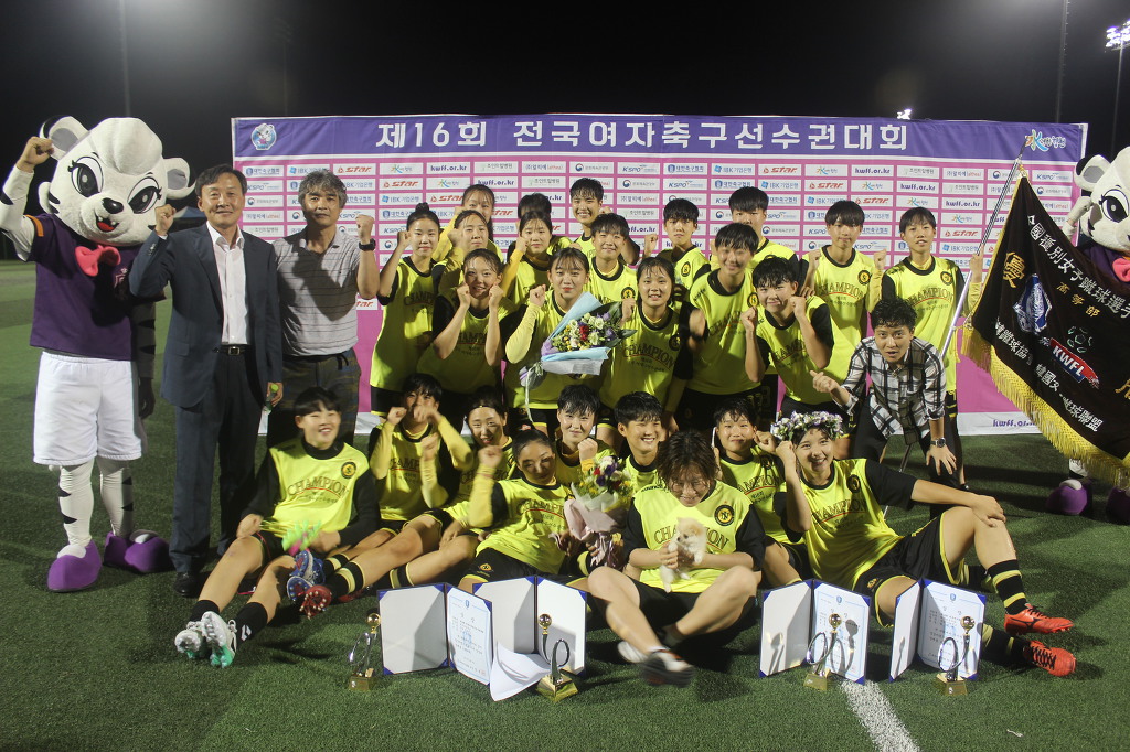 제16회 전국여자축구선수권대회 고등부 결승에서 충남 인터넷고등학교는 서울 동산정산고를 2 : 0 으로 꺽고 우승을 차지하였습니다. 2년 전 축구부가 해체되는 위기에 처했을때 전국 각지에서 모여든 선수들과 학부모님들의 노력으로 인터넷고 축구부는 어느새 고등부 정상에 오르는 기적같은 과정을 만들어 냈습니다. 특히 인터넷고 전 감독이셨던 고문희 감독님의 헌신적인 노력으로 인터넷고 축구부가 정상에 오르는 기쁨을 만끽하는 날 입니다.