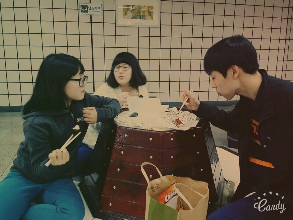 도시락을 가장 먼저 먹은 조입니다. 지하철에서 눈치 보며 먹었다 하내요.