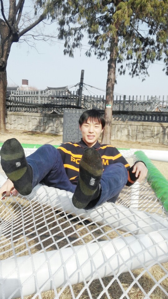이것은 제 사진인데요, 표정은 햇빛 때문에 찡그렀지만 마음은 정말 행복했습니다.
