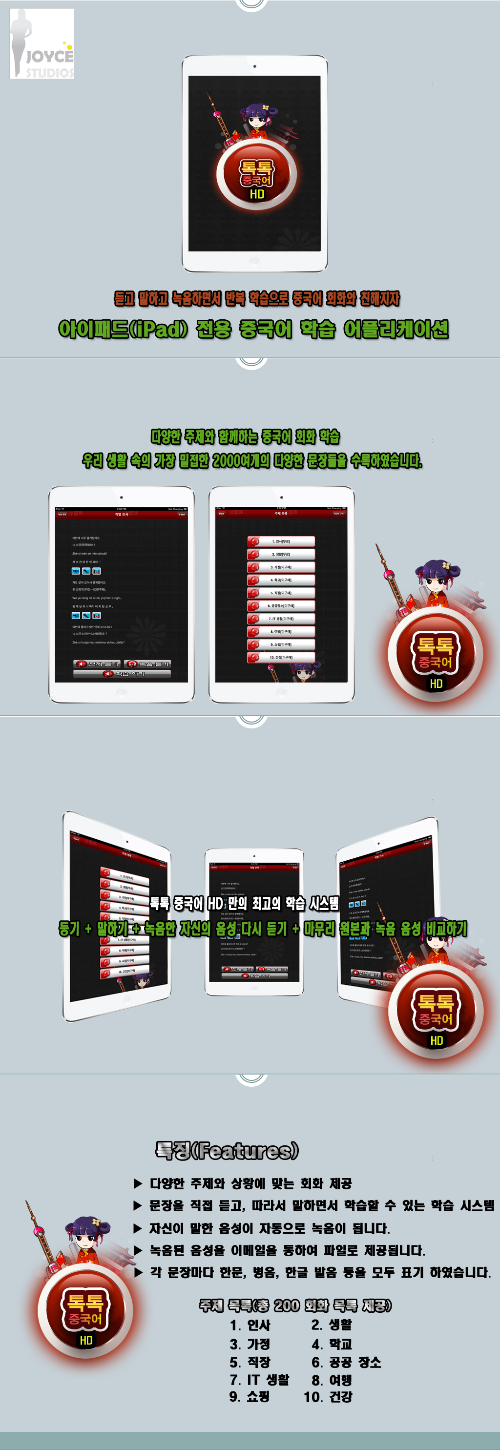 아이패드 링크 : http://itunes.apple.com/kr/app/togtog-jung-gug-eo-hd-talk/id595930562?mt=8