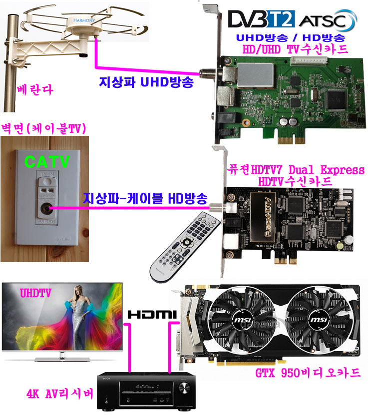 ▶UHD TV수신카드+4K UHD HTPC 장점 1.지상파 4K UHD 수신-녹화-재생 →지상파 UHD방송 콘텐츠를 원본 그대로 녹화 2.거의 모든 4K UHD콘텐츠 재생 →4K HEVC(100Mbps내외) 재생→4K 블루레이 파일도 재생 3.일반 블루레이(1080p) 영상을 2160p로 감상(화질 향상) →정품 블루레이 또는 정품을 원본 그대로 리핑한 소스를 2160p로 재생 4.지상파-케이블(20여개 채널) HD방송 수신-녹화-재생 →추가 장착한 HDTV수신카드로 지상파와 케이블TV의 20여개 채널을 수신-녹화-재생 →지상파와 케이블TV의 HD방송 콘텐츠를 원본 그대로 녹화 5.리모컨으로 동영상 재생은 물론 PC를 On/Off →추가 장착한 HDTV수신카드 리모컨을 이용해, HD/UHD방송은 물론, 블루레이 감상, 일반 동영상을 리모컨 하나로 편리하게 감상하고, PC를 On/Off할 수 있다. 6.HD/UHD오디오를 원음 그대로 듣는다. →HD오디오(Dolby TrueHD/DTS HD/LPCM)와 UHD오디오(Dolby Atmos/DTS:X)를 패스쓰루(Pass Through)가 가능하여, 원음 그대로 감상이 가능하다. 7.PC의 모든 기능을 사용할 수 있다. ▶UHD TV수신카드+4K UHD HTPC 단점 1.비용 부담이 된다. 2.온전한 AV감상을 위해선 AV시스템을 갖추어야 한다. 3.자신이 직접 AV세팅을 하고, 관리하기 위해선 다소의 공부가 필요하다. ▶왜 운영자는 UHD TV수신카드+4K UHD HTPC를 사용하는가? 사실 현재 4K UHD파일(100Mbps HEVC)을 가장 원활하게 재생하면서, HD/UHD오디오를 가장 안벽하게 패스쓰루(Pass Through) 해줄 수 있는 재생기는 없다. 삼성-LG UHDTV는 USB로 4K UHD파일을 재생은 하지만, 포맷이 조금만 달라도 재생을 못하거나, 소리나 나지 않고, 특히 50Mbps 이상의 HEVC 파일은 버벅거려 온전하게 재생을 못하고, HD/UHD오디오는 패스쓰루 하질 못한다. 또한 삼성-LG UHDTV가 지상파 UHD방송을 녹화는 가능하지만, 다른 TV나 일반 4K 재생기에서 재생을 할 수가 없다. 오직 녹화한 UHDTV에서만 재생이 되어, 영구 보전이 쉽지 않다. 그리고 운영자가 4K UHD HTPC에 HD/UHD TV수신카드가 있는데도 별도로 "퓨젼HDTV7 Dual Express" HDTV수신카드를 사용한 이유는, 2가지다. 우선 HD/UHD TV수신카드가 안테나 입력 단자가 하나여서, 지상파 UHD방송을 안테나로만 시청을 해야 하기 때문에, 케이블TV의 HD방송을 수신하지 못해서, 케이블TV HD방송을 위해 별도의 HDTV수신카드를 꼽은 것이고, 다음으론 동영상 재생프로그램인 다음 팟플레이어를 리모컨으로 제어할 목적으로, 추가로 HDTV수신카드를 꼽은 것이다. 이렇게 HDTV수신카드(리모컨)를 추가로 꼽아서 사용하면, 리모컨을 이용해서 HD/UHD방송은 물론, 블루레이 감상, 일반 동영상 감상까지 리모컨 하나로 편리하게 할 수 있기 때문이다. 그리고 리모컨으로 PC도 On/Off 할 수 있다. 그리고 무엇보다 아직 UHD소스가 많지 않기 때문에, 1080p로 제작된 일반 블루레이 원본 또는 원본 블루레이를 그대로 리핑(복사)한 소스 파일(폴더)을 UHDTV와 연동해서, 2160p로 설정 감상을 하면, 더욱 향상된 화질로 블루레이(1080p)영상을 가능할 수 있다. 4K UHD HTPC는 PC의 모든 기능도 활용이 가능하지만, 케이스가 HTPC에 적합한 구조라는 것이다. "MONCASO 972" HTPC케이스는 100%알루미늄 케이스라 냉각 효과도 좋지만, 아직 그 어떤 HTPC케이스도 디자인 측면에서 따라오질 못하고 있다. 거실에 놓고 사용하시면, PC가 아닌, 일반 AV기기처럼 보여서, 디자인 측면에서 "MONCASO 972"는 최적의 HTPC케이스가 아닌가 싶다. 끝으로 4K UHD HTPC에는 BDXL(128GB)까지 기록이 가능한 블루레이 레코더가 있어서, 현재 시중에 출시된 100GB미디어에 각종 AV소스를 담아서 보관해 놓을 수 있다. 또한 정품 블루레이도 백업(복사)해 놓을 수도 있다. 그리고 무엇보다 2016년 출시 예정인 4K 블루레이 타이틀도 재생이 가능하다. 하나의 PC로 거의 모든 AV를 감상하실 수 있는 것이 4K UHD HTPC의 가장 큰 매력이 아닐까 한다. ▶운영자가 사용 중인 4K UHD HTPC 주요 사양 *CPU : 인텔 코어i5-6세대 6600K(스카이레이크) *메인보드 : ASUS H170 PRO GAMING STCOM *RAM : 8GB(삼성 4GBx2개/DDR4) *SSD : 256GB *ODD : 블루레이 레코딩(BDXL/4K 블루레이 재생 가능) LG BH16NS40 *케이스 : 100% 말루미늄 전용 HTPC케이스(MONCASO 972) *파워 : 600W(저소음) *VGA : 지포스 GTX950 *지상파 HD/UHD TV수신카드(DVB-T2+ATSC) *리모컨 : 퓨젼HDTV7 Dual Express HDTV수신카드 ※기존 인텔 4세대 i5이상 CPU를 사용하시는 분들은, GTX 950비디오카드와 지상파 HD/UHD TV수신카드만 구비하셔도 됩니다. |