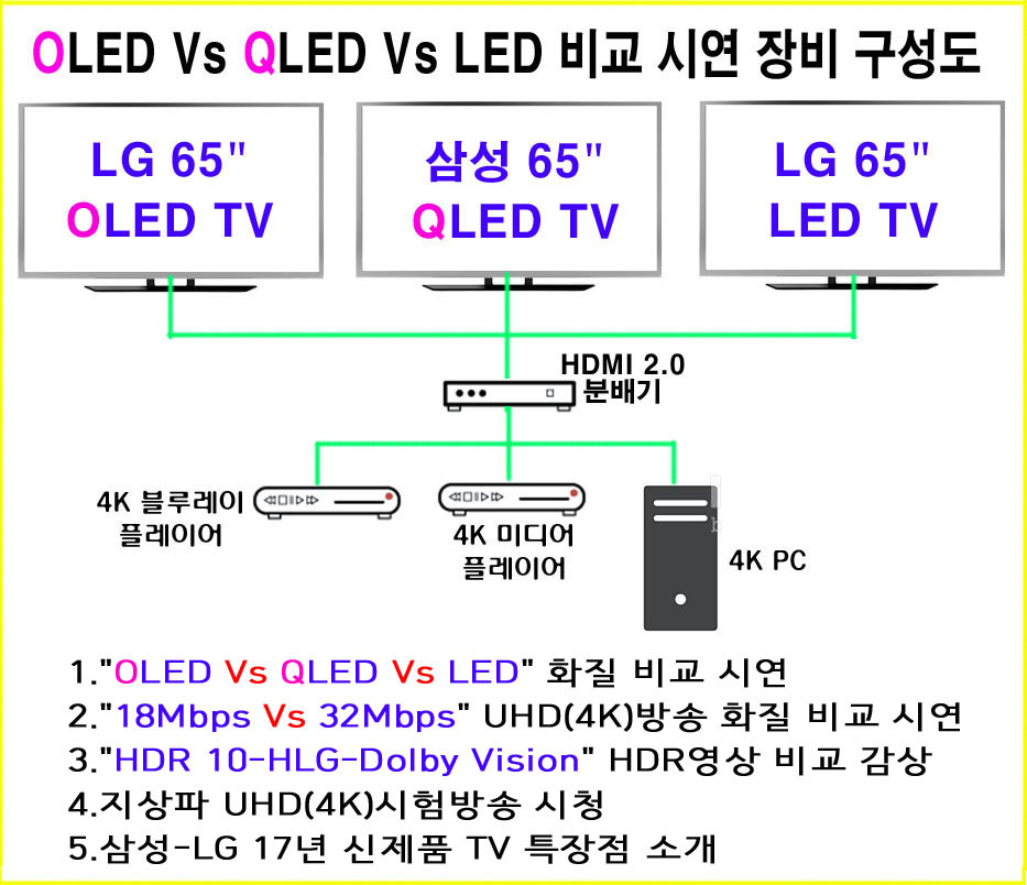 3.OLED Vs QLED Vs LED 화질비교 시연 장비 구성