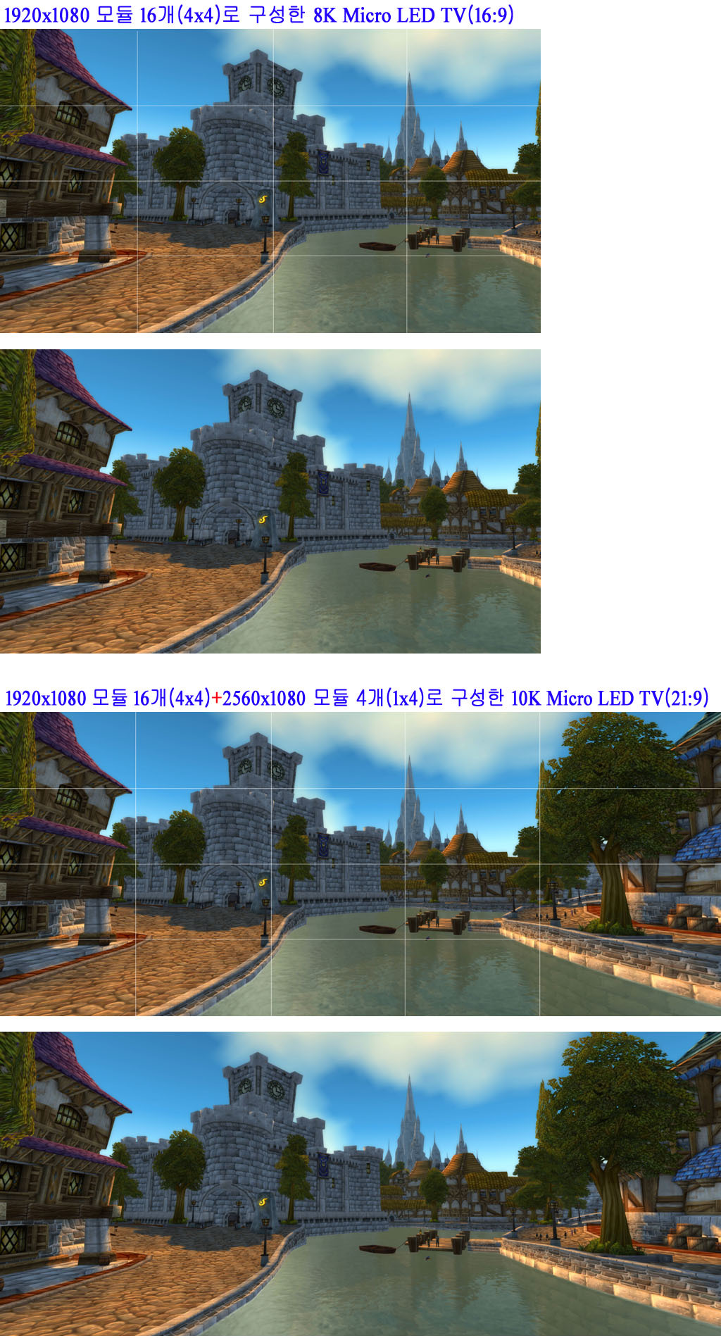 8K(16:9)↔10K(21:9) Micro LED TV ==> 총 8개 모듈 사용 ☞화면(모듈) 구성