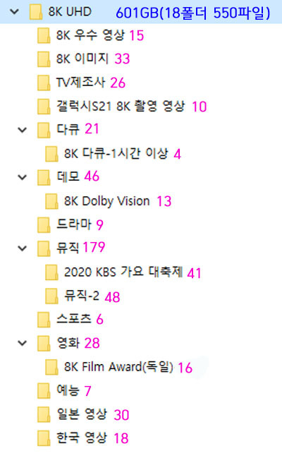 8K UHD 영상 리스트-601GB(18폴더 550파일)