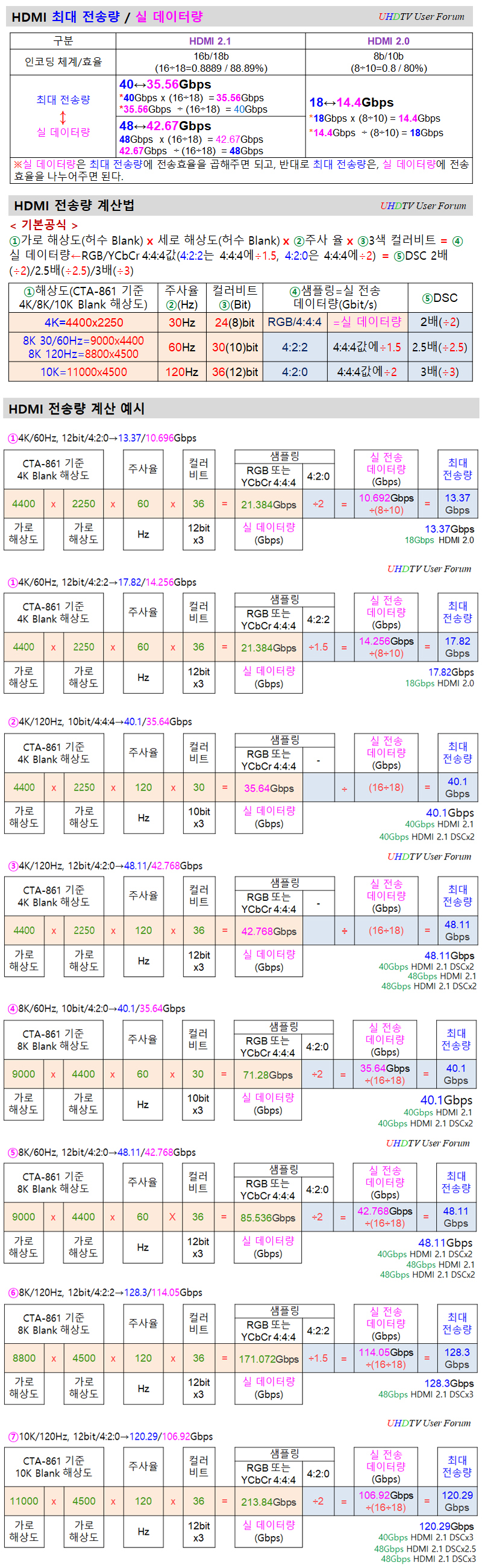 | HDMI Forum 제시 전송량 계산치 | HDMI 2.1 기준 | ||